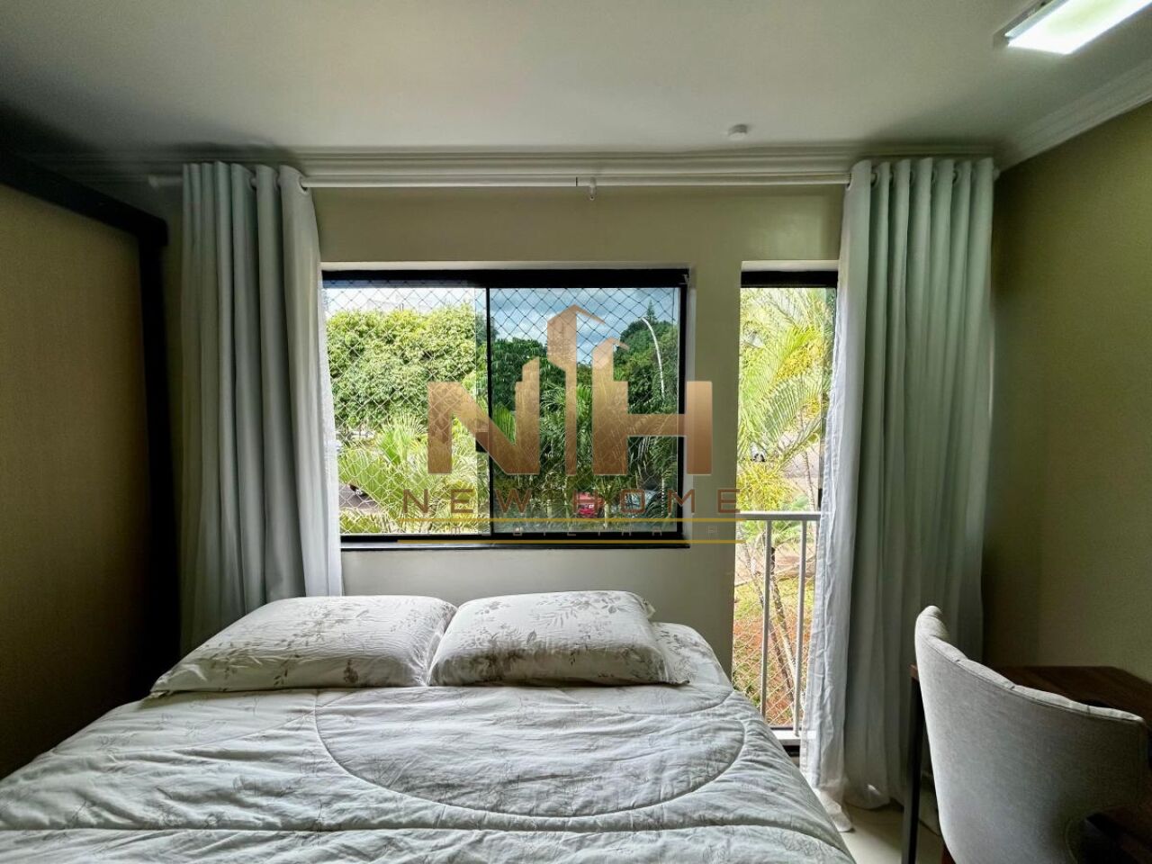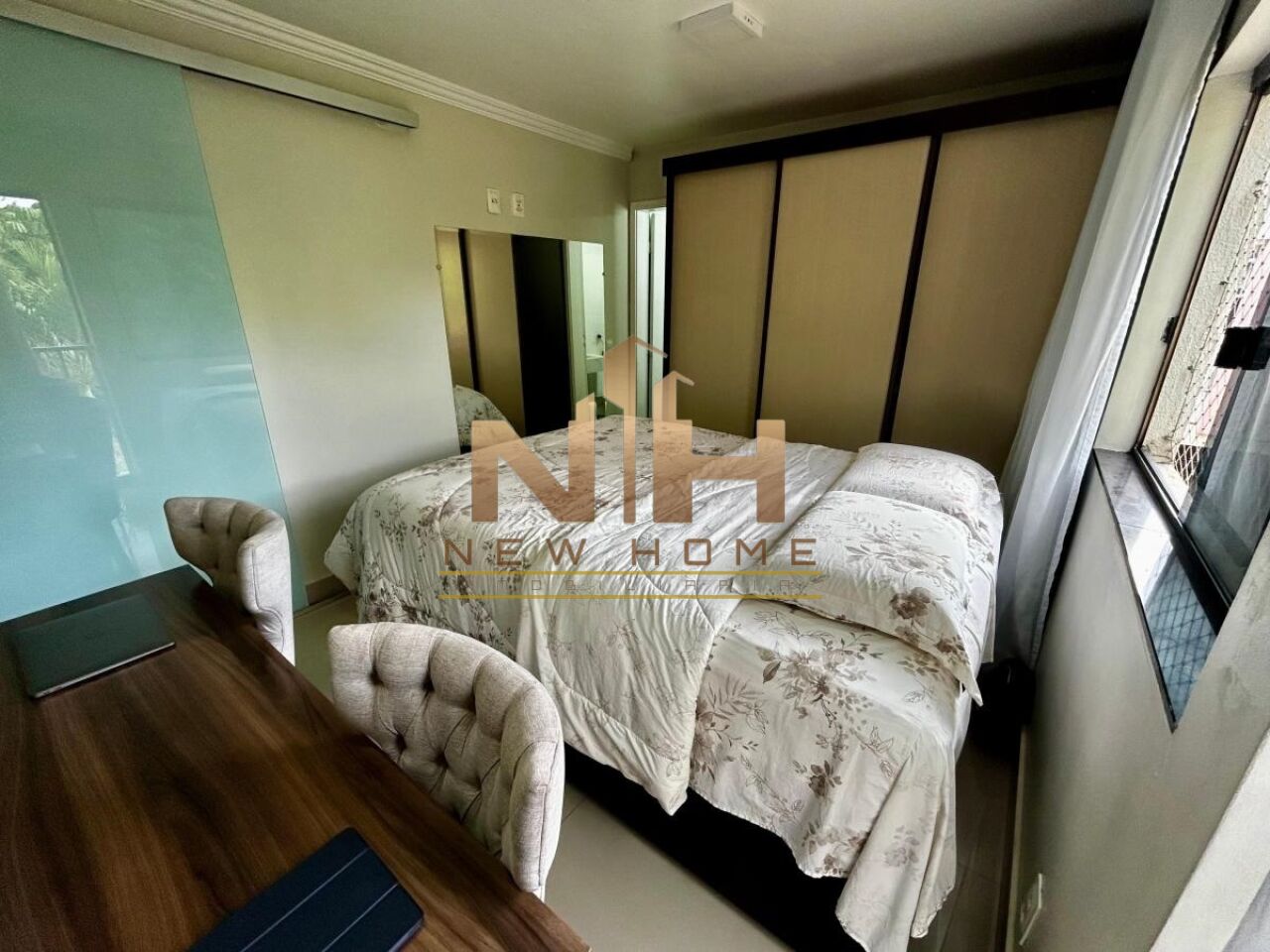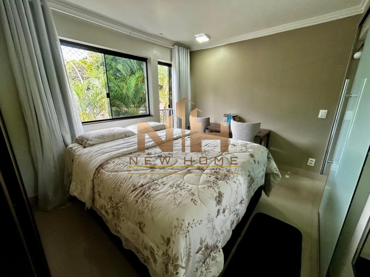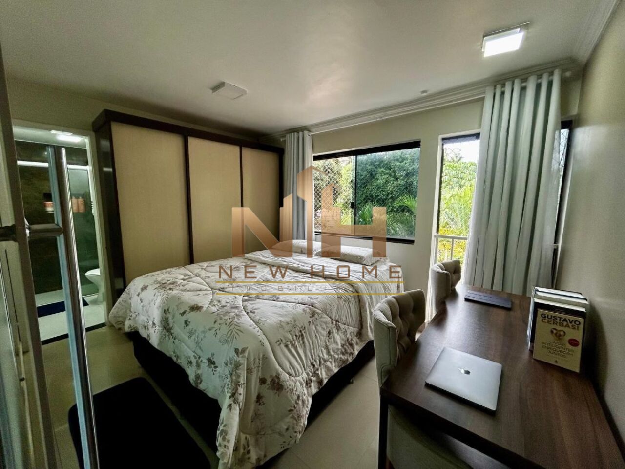 Suíte espaçosa, bem ventilada e iluminação natural, com vista livre.