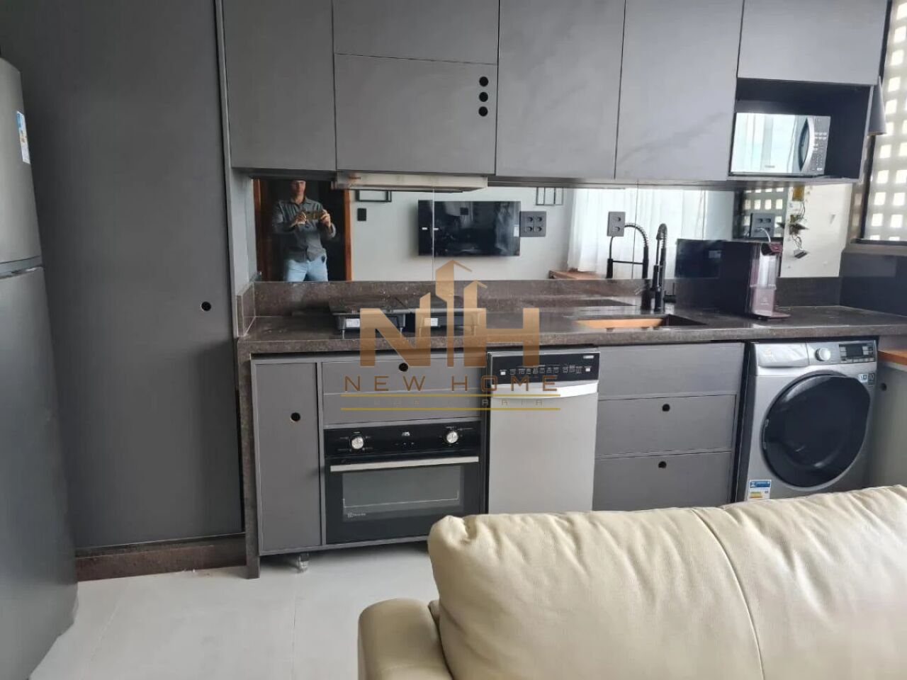 A integração entre os ambientes valoriza o espaço e a funcionalidade. A cozinha gourmet é equipada com eletrodomésticos de última geração: fogão por indução, forno de linha premium, coifa retrátil, lava-louças, micro-ondas e máquina lava e seca.