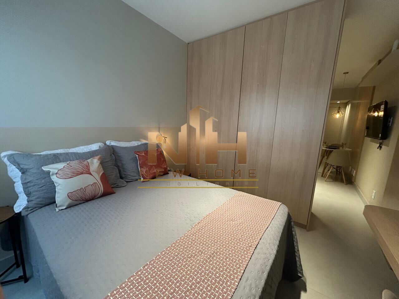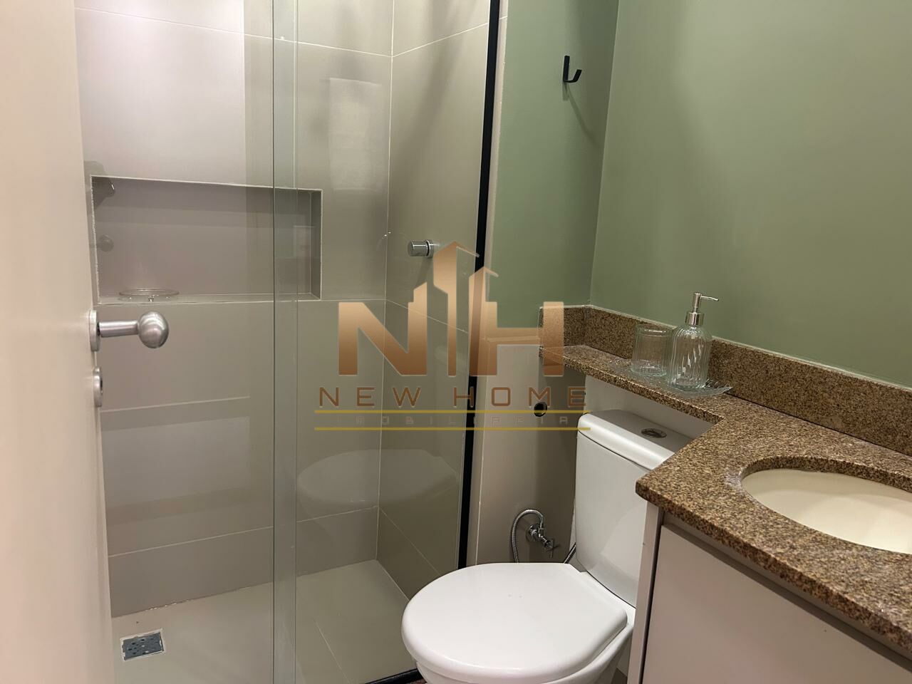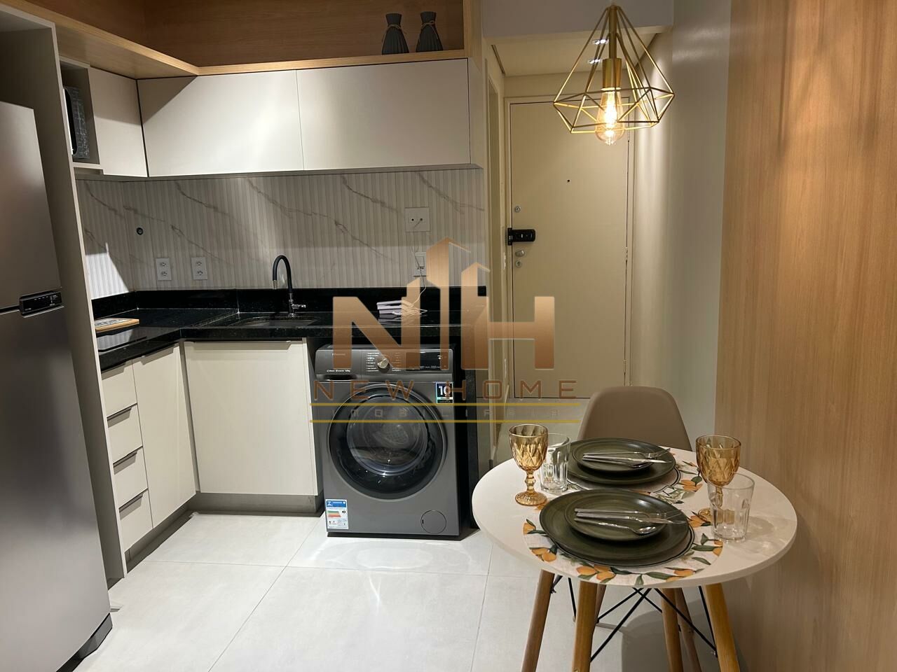 Totalmente reformada, conta com piso em porcelanato, ar-condicionado, projeto de iluminação moderno e armários planejados novos. A cozinha, integrada ao ambiente, traz bancada em granito e está equipada com geladeira nova, fogão cooktop, micro-ondas e máquina lava e seca ? tudo novinho em folha.